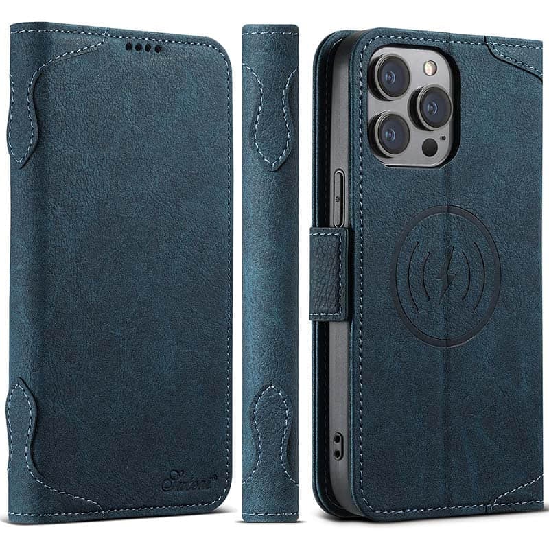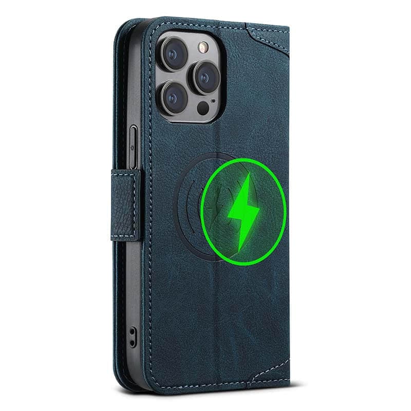 Portefeuille en cuir compatible avec étui de chargement magnétique pour iPhone